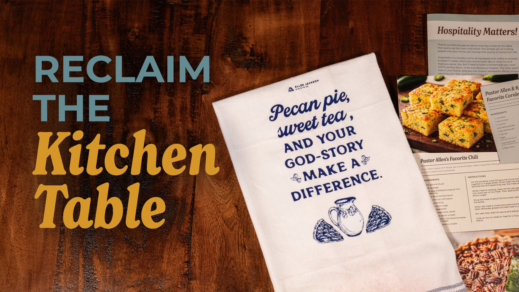 • Three family recipes from Pastor Allen—his mom’s famous pecan pie, his favorite chili, and cornbread—perfect for a crowd-pleasing dinner!